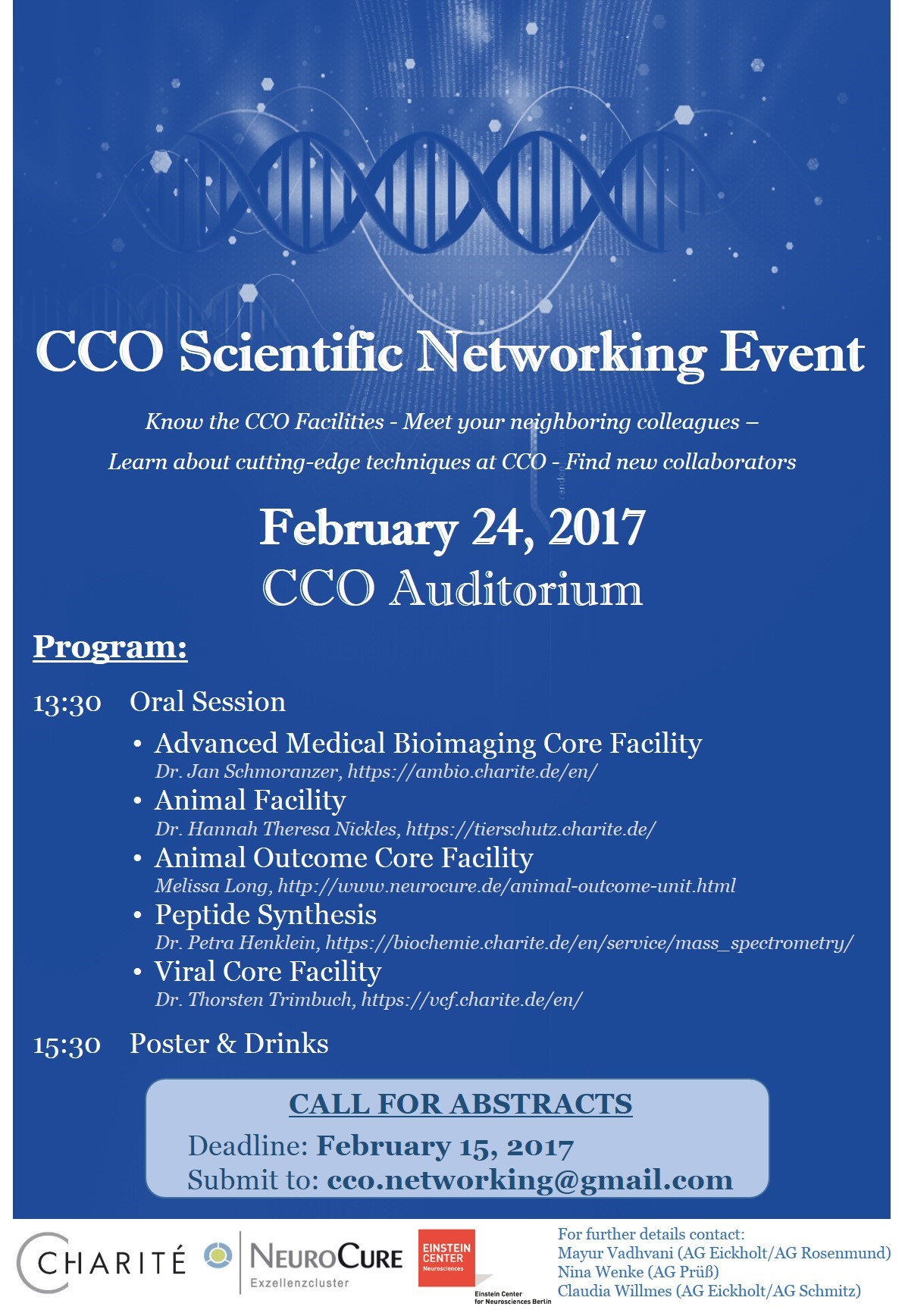 The poster abstracts can be submitted at cco.networking@gmail.com. Please include the name of all authors, their affiliations and the title of the poster.