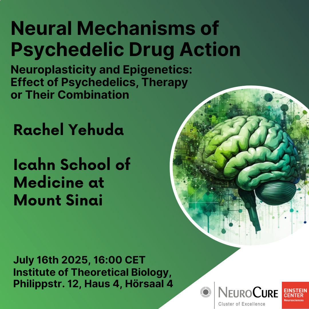 As part of the ongoing Student/Postdoc-Run Speaker Series (SPRSS), and on behalf of the Neural Mechanisms of Psychedelic Drug Action Group, Dr. Rachel Yehuda from the Icahn School of Medicine at Mount Sinai will give a talk titled " Neuroplasticity and Epigenetics: Effect of Psychedelics, Therapy or Their Combination."